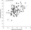 ResultsMultiple linear regression analyses showed that BMI significantly correlated with BARIsc; β=.23, p<0.02. This was found only in the overweight/obese patients, β=.27, p<0.01, but not in patients with normal BMIs, β=0.08, p=0.71.