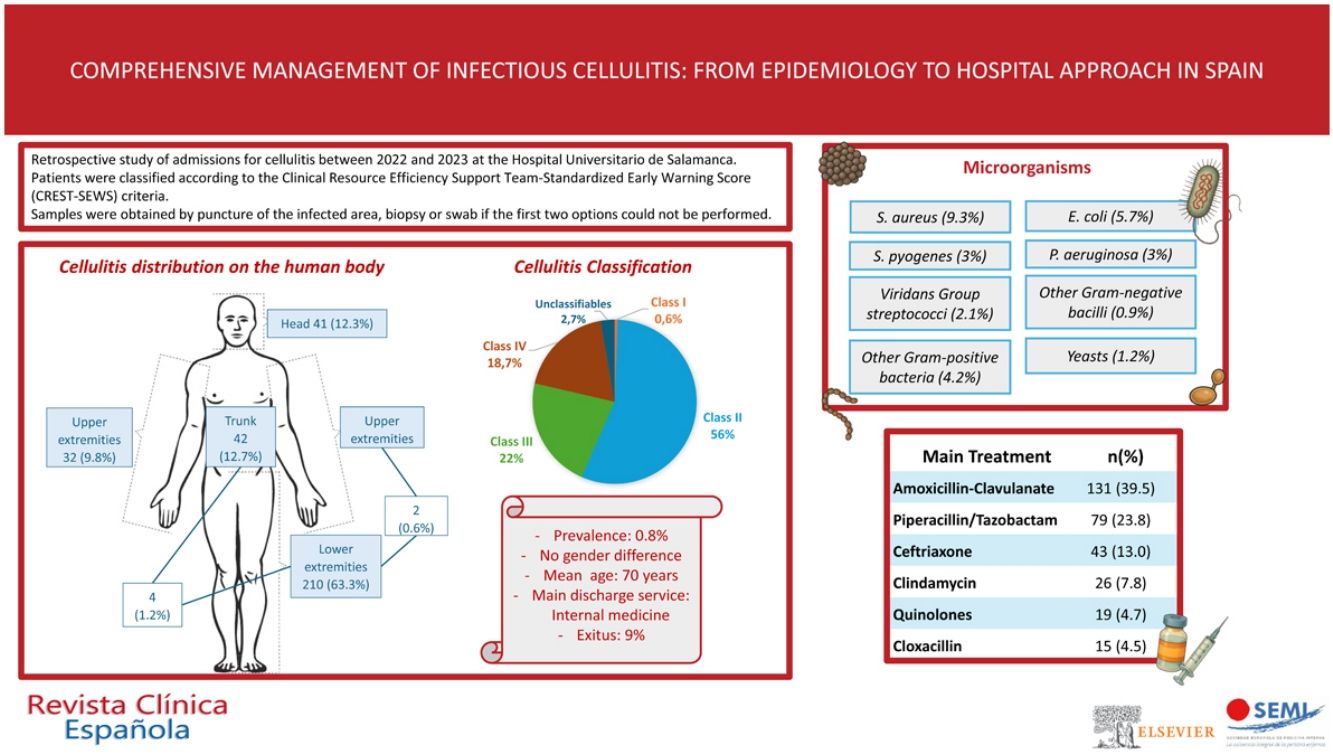 MethodsRetrospective study of admissions for cellulitis between 2022 and 2023 at the Salamanca University Hospital, classified according to the CREST-SEWS criteria.