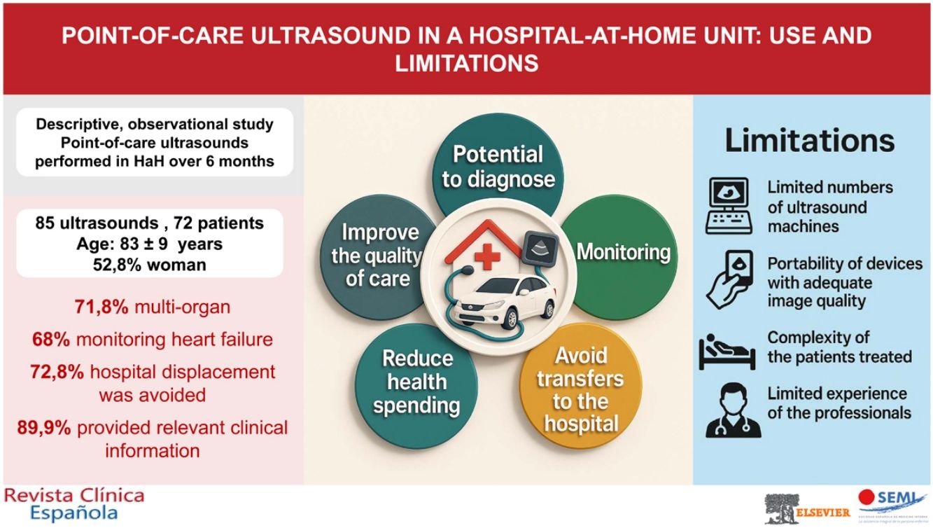 ConclusionsPoint-of-care ultrasound is a useful tool in the HaH Unit considering it allows optimizing patient follow-up, improving clinical decision-making, and even avoiding the displacement of patients to the hospital.