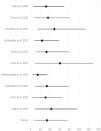 Se incluyeron inicialmente 27 estudios en la revisión sistemática y metaanálisis (SRMA). De ellos, 17 estudios no tenían datos coincidentes. Comunicaron datos de 2.149 pacientes, 1.369 (81,2%) eran mujeres. La edad media era de 52,4 (DE 6,6) años. El 45,2% de los pacientes presentaban el subtipo difuso y el 54,8% el subtipo limitado o esclerodermia sinusal. El 38,7% de los pacientes presentaban anticuerpos antitopoisomerasa (ATA) positivos y el 14,2% anticuerpos anticentrómero (ACA) positivos. El porcentaje medio de capacidad vital forzada (FVC) al inicio del estudio fue del 80,5% (DE 6,9) y de capacidad de difusión pulmonar para el monóxido de carbono (DLco) fue del 59,1% (DE 9,6). Doce estudios presentaron datos de extensión de SSc-EPID ajustados por PFR y se incluyeron en el metaanálisis. Los 10 estudios observacionales de cohortes se analizaron por separado. El porcentaje global de afectación limitada se estimó en un 63,5% (IC 95%: 55,3–73; p < 0,001) utilizando el modelo de efectos aleatorios. La heterogeneidad entre estudios (I2) fue del 9,8% (IC95% 0–68,2%). La afectación pulmonar extensa se estimó en 34,3% (IC 95%: 26–45,4; p < 0,001). La heterogeneidad entre estudios (I2) fue del 0% (IC 95%: 0–61,6%) con el modelo de efectos aleatorios.