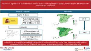 Tendencias regionales en la incidencia de embolia pulmonar en España (2016-2022): un análisis de las diferencias entre comunidades autónomas