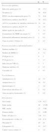 Patients and methodsAn observational, cross-sectional multicenter study was performed in 2010 in 16 hospitals in Andalusia and included 20 consecutive patients per center. The study variables were age, sex, risk factors for VTE and hemorrhage, the risk-adjusted PRETEMED of VTE, adjustment of thromboembolic prophylaxis at admission and at discharge and hospital mortality.