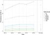ResultadosDe los 4.664.224 pacientes de nuestra cohorte, la prevalencia de FA osciló entre el 1,9% y el 2,9%. Se incluyeron un total de 57.190 pacientes en tratamiento con ACO, de los cuales el 80,7% recibía antagonistas de la vitamina K (AVK) y el 19,3% ACO de acción directa (ACOD). La mediana de edad fue de 78 y 76 años, respectivamente, y los varones constituyeron el 53% de la cohorte. Las comorbilidades como hipertensión arterial (76,3%), diabetes (48,0%), insuficiencia cardíaca (42,2%) y enfermedad renal (18,7%) fueron frecuentes y más frecuentes en los usuarios de AVK. Más del 50% tenía una puntuación alta de CHA2DS2-VASc. El cambio de tratamiento más frecuente fue de ACOD a acenocumarol (58,6% a 70,2%). En los cambios de AVK a ACOD, apixabán fue el más elegido (35,2%).