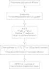 About 20% of hospitalized patients with bacterial pneumonia have an accompanying pleural effusion. Parapneumonic effusions (PPE) are associated with a considerable morbidity and mortality. The main decision in managing a patient with a PPE is whether to insert a chest tube (complicated PPE). Imaging (i.e., chest radiograph, ultrasound and computed tomography) and pleural fluid analysis (i.e., pH, glucose, lactate dehydrogenase, bacterial cults) provide essential information for patient management. Therefore, all PPEs should be aspirated for diagnostic purposes. This may require image-guidance if the effusion is small or heavily loculated. According to the current guidelines, any PPE that fulfills at least one of the following criteria should be drained: size ≥ 1/2 of the hemithorax, loculations, pleural fluid pH < 7.20 (or alternatively pleural fluid glucose < 60 mg/dl), positive pleural fluid Gram stain or culture, or purulent appearance. The key components of the treatment of complicated PPE and empyema are the use of appropriate antibiotics, provision of nutritional support, and drainage of the pleural space by one of the following methods: therapeutic thoracentesis, tube thoracostomy, intrapleural fibrinolytics, thoracoscopy with breakdown of adhesions or thoracotomy with decortication. The routine use of intrapleural fibrinolytic therapy remains controversial.