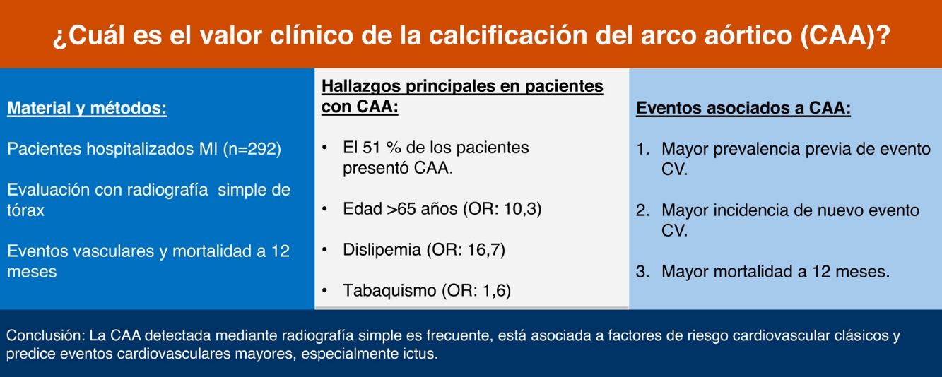 La calcificación del arco aórtico (CAA) es un marcador subestimado de riesgo cardiovascular, vinculado a mayor incidencia de eventos cardiovasculares mayores y mortalidad.