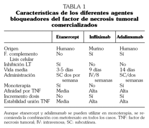 Características de los fármacos bloqueadores del factor de necrosis tumoral