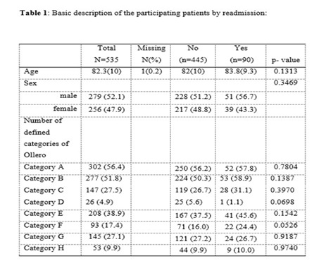 Objetivos: Existe una falta de herramientas validadas que predigan con precisión qué pacientes con multimorbilidad tienen riesgo de reingreso hospitalario a corto plazo. Nuestro objetivo fue identificar las principales variables implicadas en los reingresos.