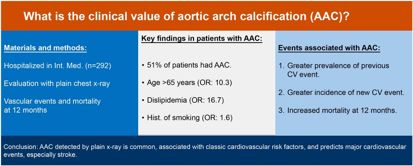 ConclusionsAAC is a common finding among hospitalized patients and is associated with increased cardiovascular risk. Its detection on chest X-rays may serve as an accessible tool for risk stratification in high-risk populations.